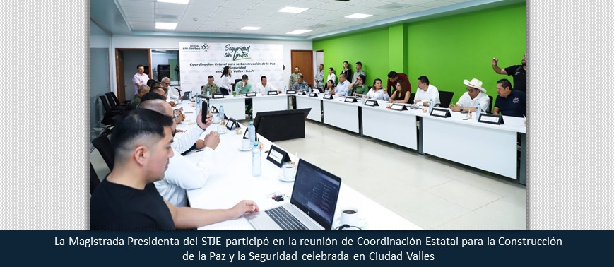 La Magistrada Presidenta del STJE participó en la reunión de Coordinación Estatal para la Construcción de la Paz y la Seguridad celebrada en Ciudad Valles |